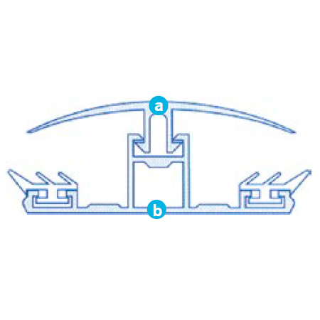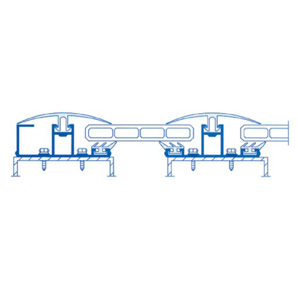 Dit tussenprofiel bestaat uit twee componenten: een gebogen pvc afdeklijst die aan de bovenzijde wordt geplaatst en een aluminium middenprofiel met ribbels aan de onderzijde. Samen zorgen ze voor een solide en waterdichte verbinding. De sterke aluminium basis wordt stevig op de constructie gemonteerd, terwijl de pvc kliklijst bovenop wordt bevestigd voor een optimale bescherming tegen waterinfiltratie.